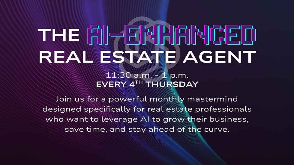 Join us for a powerful monthly mastermind designed specifically for real estate professionals who want to leverage AI to grow their business, save time, and stay ahead of the curve.